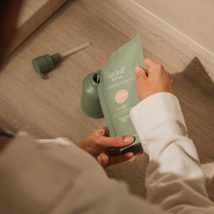 Het uiteindelijke resultaat? Een prachtige matte, olijfgroene spoutbag die naadloos aansluit bij de originele Keune-dispenser. De verpakking is voorzien van een handige sticker die je eenvoudig van de spoutbag kunt halen en op de dispenser kunt plakken, zodat je altijd weet welk product erin zit. Hoewel het eindresultaat altijd klinkt als een logische keuze, en misschien zelfs als een eenvoudig proces, blijkt niets minder waar. Samen met Keune hebben we veel verschillende ideeën en opties onderzocht om tot deze oplossing te komen.