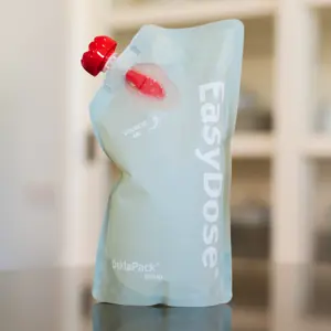 EasyDose® biedt ultiem gebruiksgemak en precisie. De pouch kan worden gevuld via de tuit of via een open hoek en wordt eenvoudig geactiveerd door een lichte druk op het geveerde mechanisme.