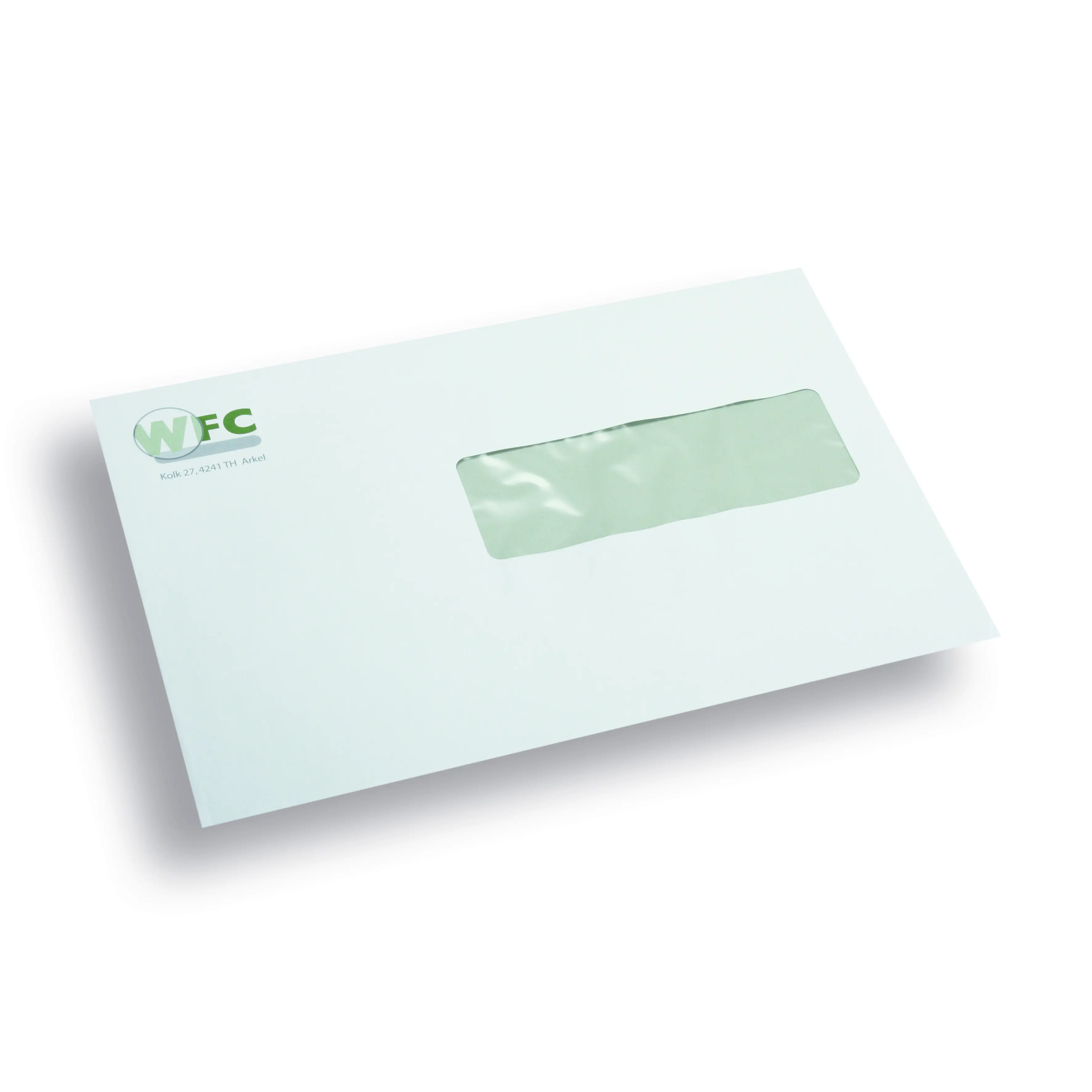 162 x 229 mm, 1 kleur bedrukt, venster rechts, 80 grams