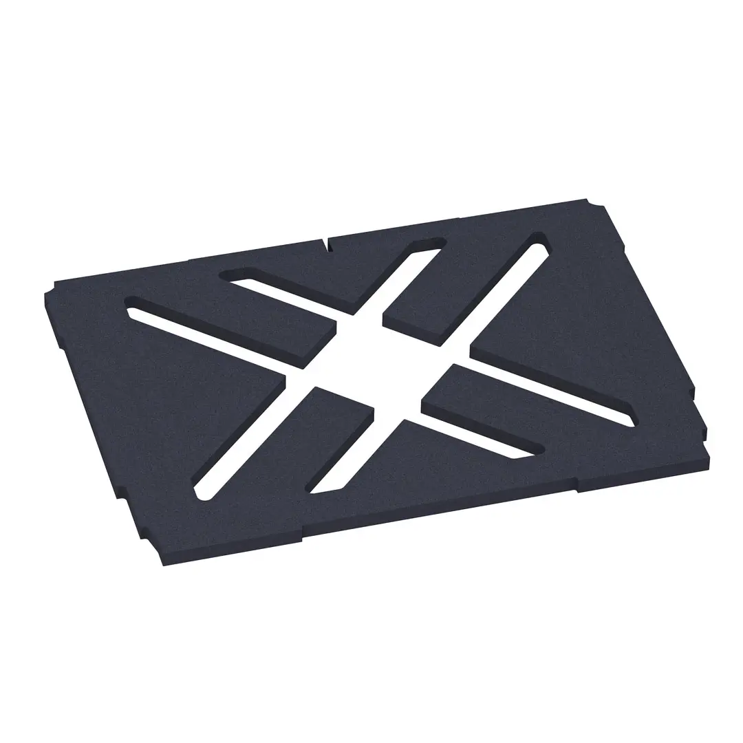 Basefoam zorgt voor een gladde bodem van de Systainer3 M. Het dubbele kruis volgt de contouren van de bodem.