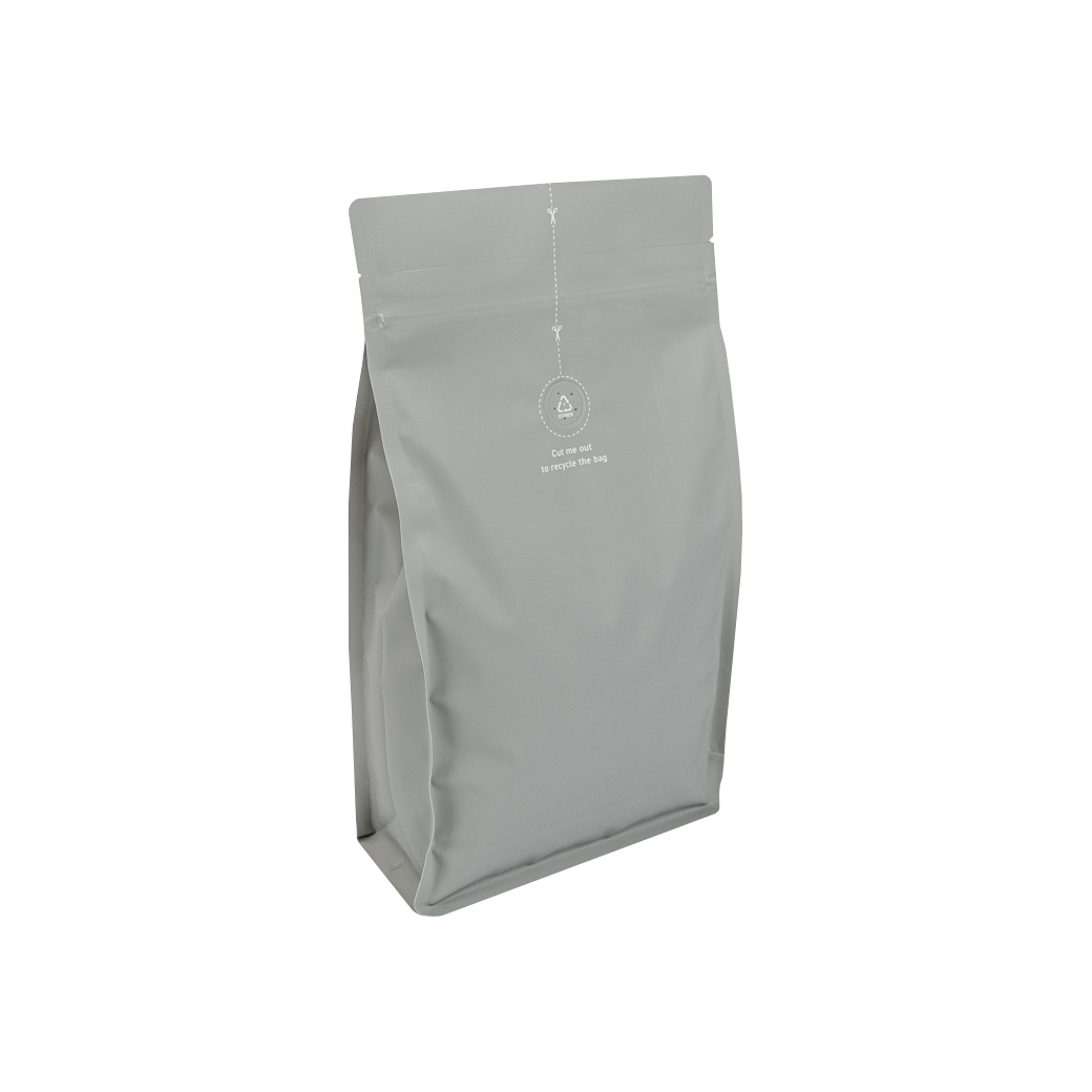 Zowel de folie als de gripsluiting zijn geproduceerd van 100% PE met een additionele barrière. We noemen dit dan ook een verpakking van mono-materiaal. Hierdoor is deze verpakking na het uitknippen van het ventiel volledig te recyclen en kan de verpakking na gebruik weer dienen als grondstof voor een nieuwe toepassing. Na gebruik kan deze boxpouch worden ingezameld bij het plastic afval. De boxpouch is hersluitbaar middels de gripsluiting, is sealbaar, heeft een easy tear off en een barrière tegen vocht en zuurstof. De verpakking is door het ventiel geschikt voor het verpakken van koffiebonen en vanwege de barrière biedt deze verpakking een verbeterde houdbaarheid. Vanaf 100 stuks is deze boxpouch beschikbaar in 4 formaten.