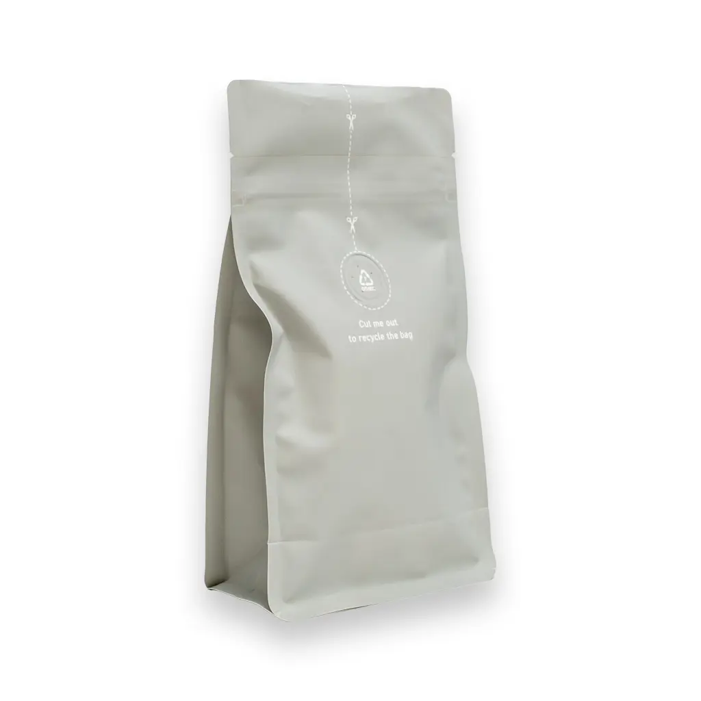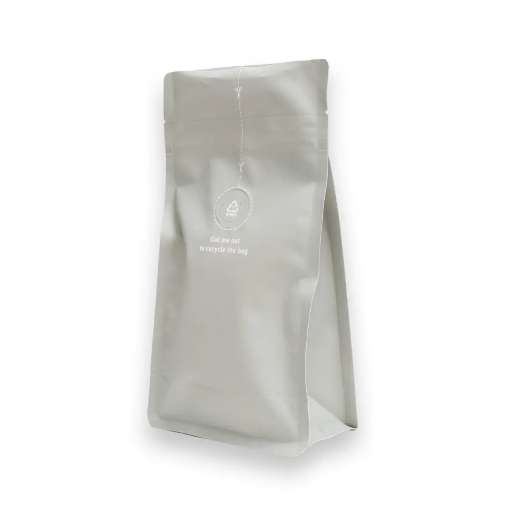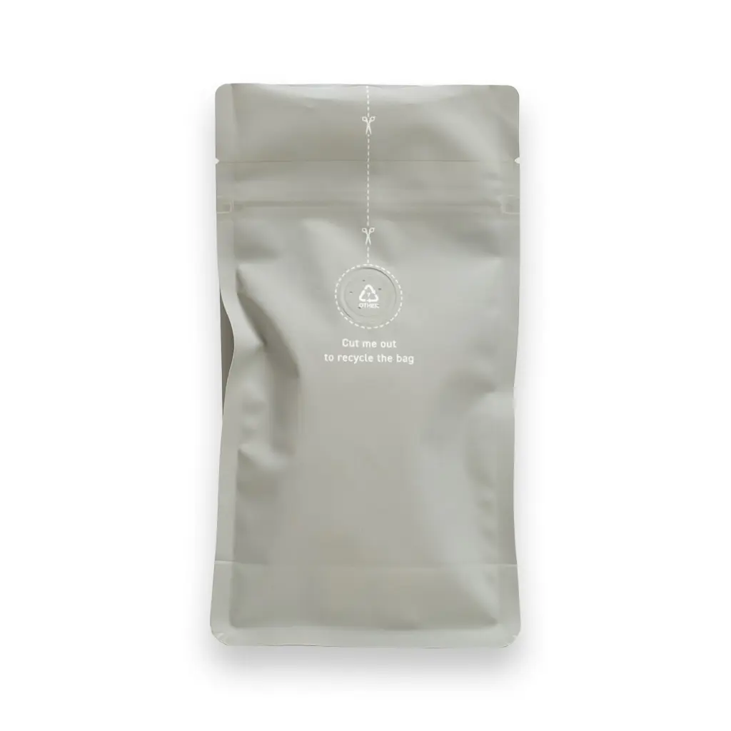 Zowel de folie als de gripsluiting zijn geproduceerd van 100% PE met een additionele barrière. We noemen dit dan ook een verpakking van mono-materiaal. Hierdoor is deze verpakking na het uitknippen van het ventiel volledig te recyclen en kan de verpakking na gebruik weer dienen als grondstof voor een nieuwe toepassing. Na gebruik kan deze boxpouch worden ingezameld bij het plastic afval. De boxpouch is hersluitbaar middels de gripsluiting, is sealbaar, heeft een easy tear off en een barrière tegen vocht en zuurstof. De verpakking is door het ventiel geschikt voor het verpakken van koffiebonen en vanwege de barrière biedt deze verpakking een verbeterde houdbaarheid. Vanaf 100 stuks is deze boxpouch beschikbaar in 4 formaten.