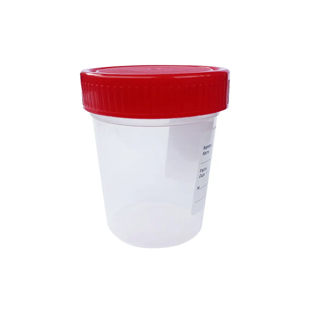 Container PP 125 ml met rode dop - 1 Doos = 450 Stuks