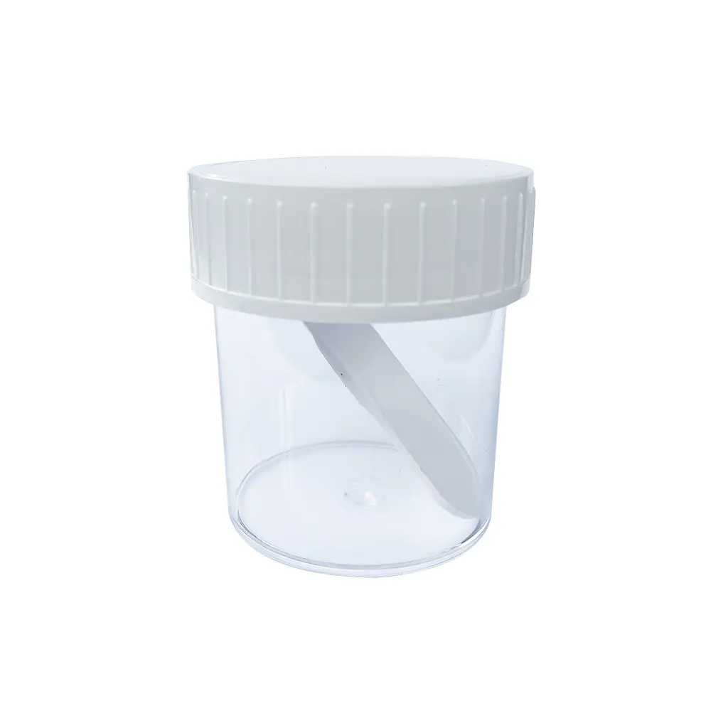 Container PS 150 ml met witte dop en lepel - 1 Doos = 360 Stuks