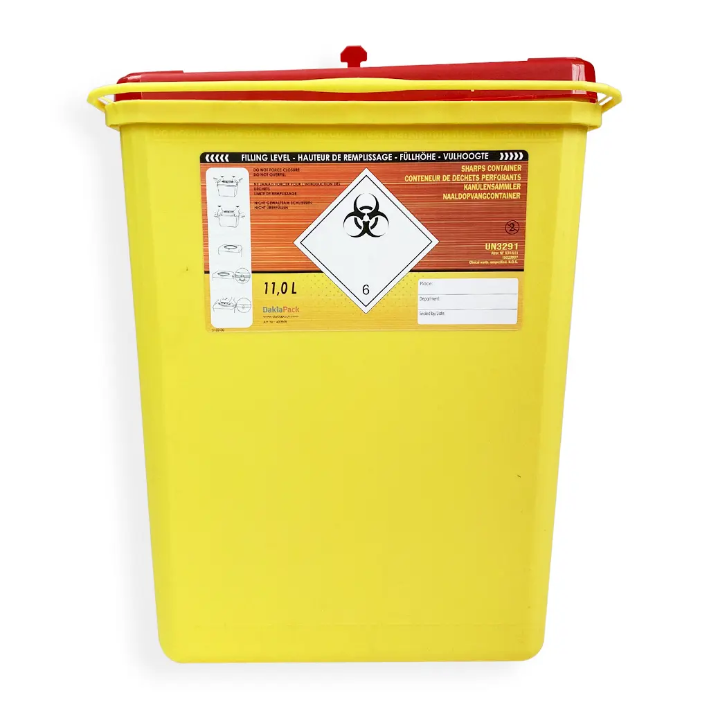 Het assortiment Daklapack-Safebox naaldencontainers is vervaardigd van milieuvriendelijk Polypropyleen. De containers zijn voorzien van extra wanddikte om doorboring door naalden te voorkomen. De naaldencontainers zijn ontworpen om efficiënt en veilig te werken in een laboratorium, ziekenhuis of zorginstelling. Openen en sluiten van de deksel gaat gemakkelijk met een simpele handgreep. De containers zijn voorzien van een universele naaldontkoppeling. De deksel is voorzien van een extra opening voor klein afval en kan zowel tijdelijk als permanent worden vergrendeld. De container (etiket) heeft een zichtbare vullijn die aangeeft tot waar maximaal gevuld mag worden. Voordelen: De containers zijn volledig autoclaveerbaar. Zowel leeg als vol stapelbaar Voorzien van handvaten om het transport te vereenvoudigen De containers zijn UN en ADR goedgekeurd Ontworpen voor wand, tafel- en buismontage. De montagesystemen zijn verkrijgbaar op aanvraag Vervaardigd van milieuvriendelijk Polypropyleen Certificaten: ISO 23907 wereldwijd NFX 30-511 ( Frankrijk)