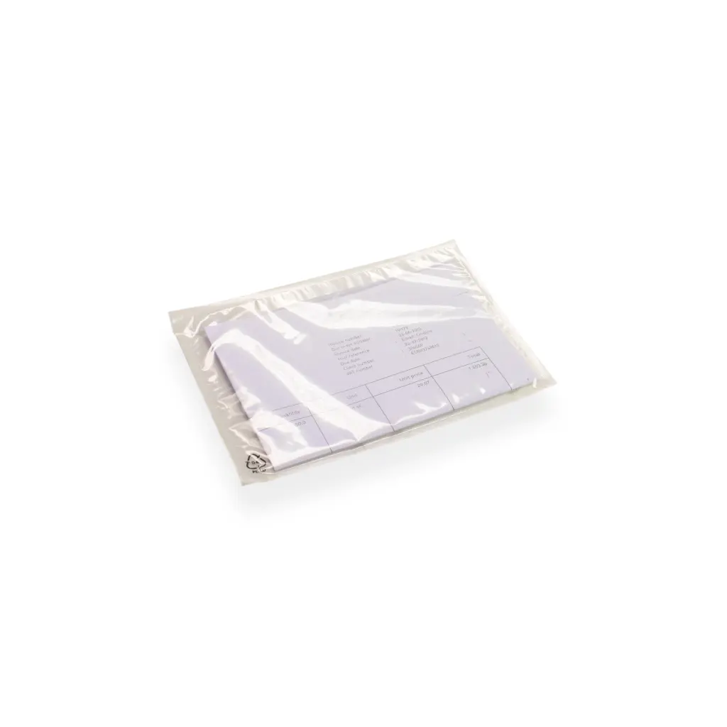 DocuBag paklijst envelop is de ideale paklijst/ documenthouder en biedt maximale bescherming tijdens de verzending van vrachtbrieven, paklijsten, facturen, garantiebewijzen en instructies. Ze zijn gemaakt van hoogwaardig polyethyleen en uiteraard zelfklevend voor een perfecte permanente hechting op elke ondergrond. Vullen en verzegelen gaat feilloos en snel. U kunt de DocuBag ook door ons laten bedrukken.