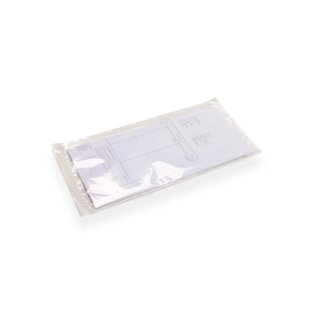 DocuBag paklijst envelop is de ideale paklijst/ documenthouder en biedt maximale bescherming tijdens de verzending van vrachtbrieven, paklijsten, facturen, garantiebewijzen en instructies. Ze zijn gemaakt van hoogwaardig polyethyleen en uiteraard zelfklevend voor een perfecte permanente hechting op elke ondergrond. Vullen en verzegelen gaat feilloos en snel. U kunt de DocuBag ook door ons laten bedrukken.