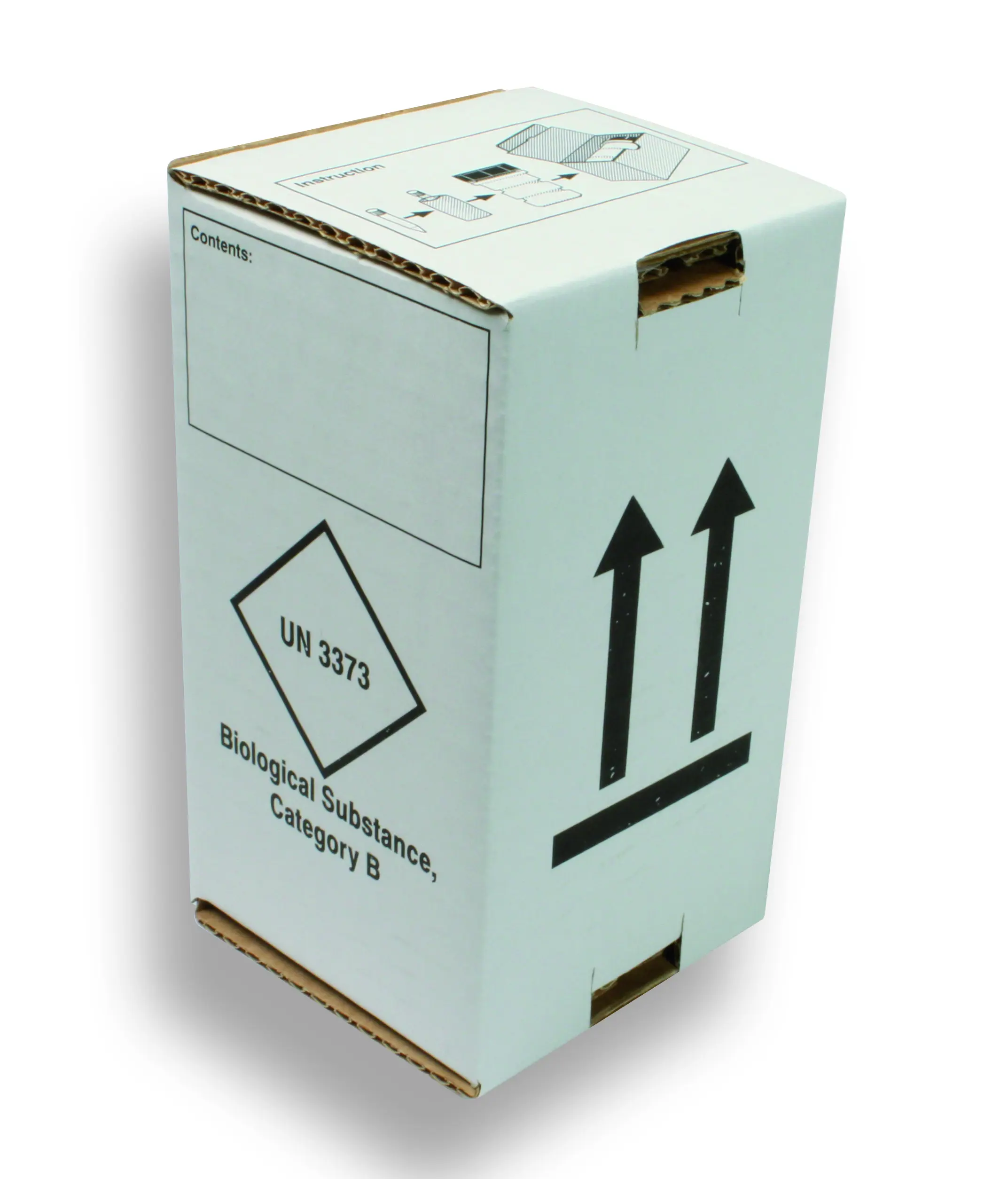 Goedgekeurde doos voor groene DG transportcontainer 500 ml (520150 en 520001). Voorbedrukt met UN3373.