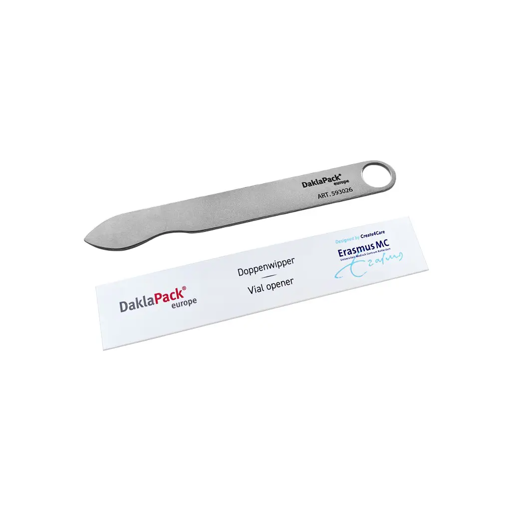 De doppenwipper is specifiek ontworpen om (medicijn) flacons te openen, welke zijn voorzien van een (aluminium) dop. De speciale vorm en de afgevlakte punt maken het zeer gemakkelijk om de lip van de dop omhoog te wippen. Op deze manier kunnen de flacons op een hygienische en veilige manier worden geopend, waardoor ook het gebruik van andere scherpe materialen zoals scharen, messen of zelfs de nagels niet meer nodig zijn. Tevens is de doppenwipper voorzien van een ophanggat en is deze gemakkelijk te reinigen. De doppenwipper is ontworpen door het innovatieteam 'Create for Care' van het Erasmus Medisch Centrum en door DaklaPack geproduceerd. DaklaPack en Erasmus Medisch Centrum werken samen aan de ontwikkeling van diverse oplossingen voor de medische industrie.