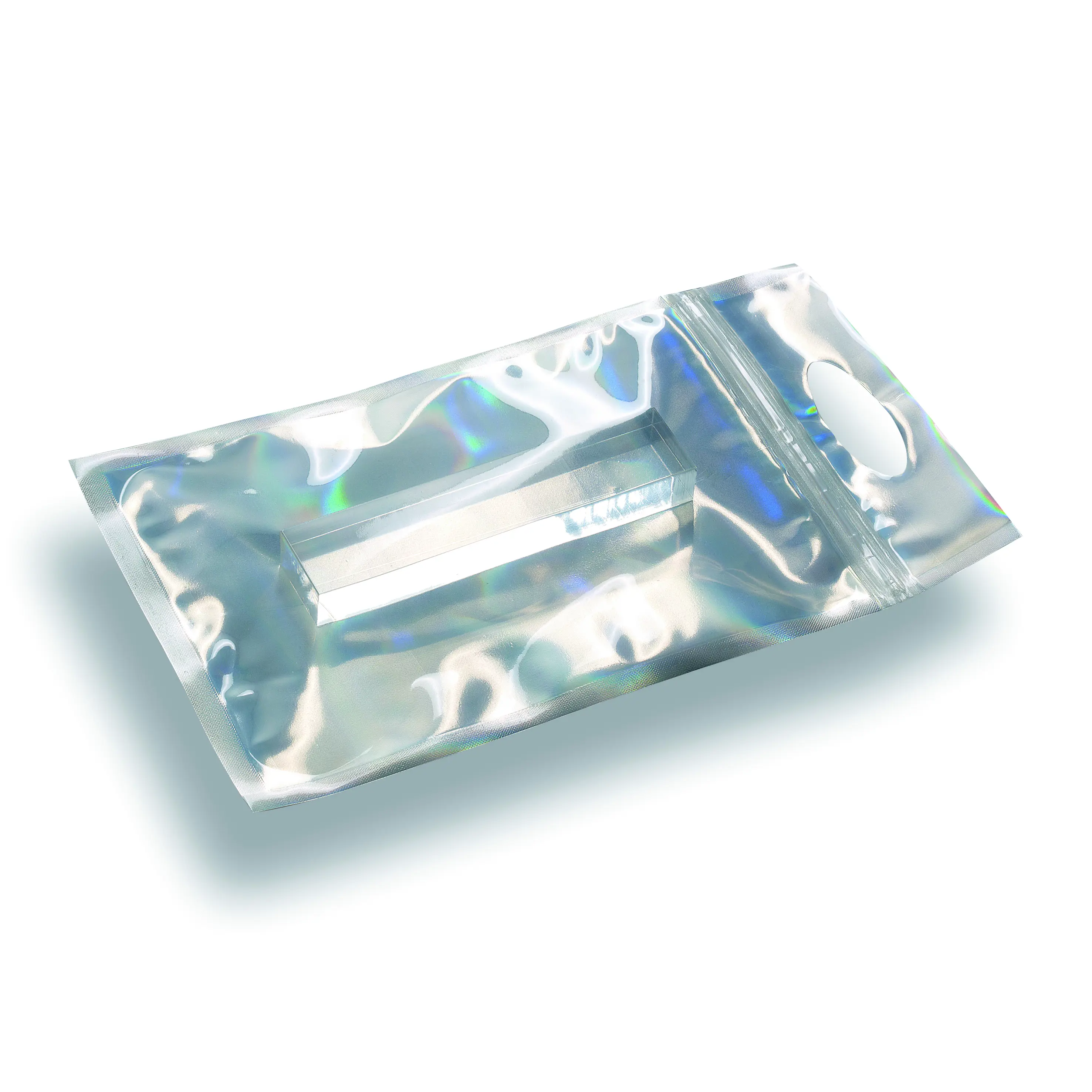 De FlashBag is een schitterende geschenkverpakking, letterlijk en figuurlijk! Een geschenk op zich. Hij straalt luxe uit en accentueert op spectaculaire wijze de hoge attentiewaarde. De FlashBag is standaard verkrijgbaar in twee formaten en in acht spetterende kleuren. Hij is voorzien van een handige gripsluiting en een uitgestanst handvat. De zilverkleurige achter- en binnenzijde is met behulp van lasertechniek holografisch bewerkt. Dat geeft in combinatie met de transparante, ingekleurde folie aan de voorzijde verrassende lichteffecten!