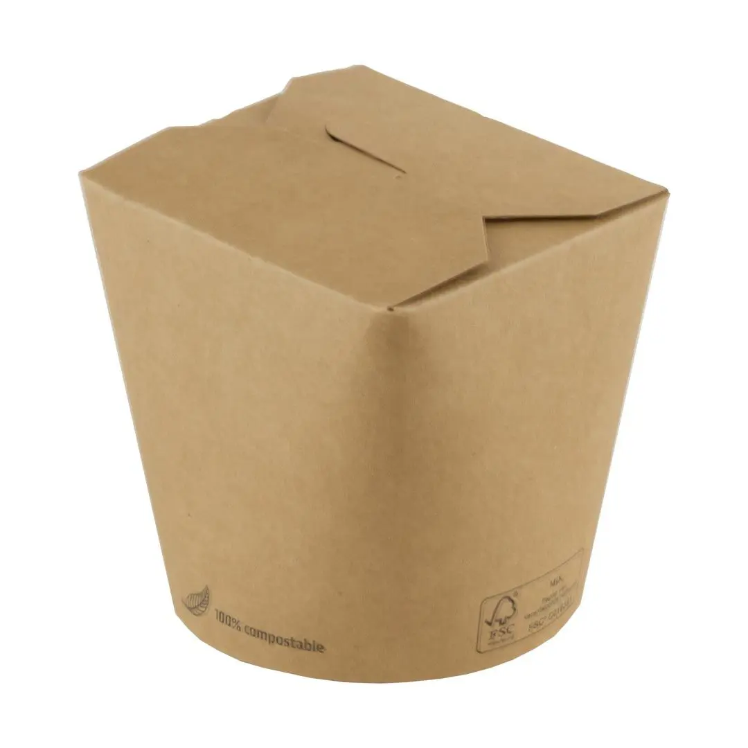 Onze FSC kraft/PLA noodle boxen hebben een duurzame en natuurlijke uitstraling! De stevige eigenschap die het kraft materiaal biedt maakt de noodle boxen zeer geschikt voor noodles, maar ook pasta's, poke bowls en andere warme en koude gerechten voor takeaway. De noodle boxen zijn voorzien van een PLA coating aan de binnenkant om te zorgen dat de olie en het vocht niet het karton intrekken. Geef jouw lekkere gerechten een stoere look door ze te serveren in deze duurzame noodle box! Daarbij zijn deze noodle boxen ook zeer geschikt om mee te geven als doggybag of als verpakking voor afhaalmaaltijden en thuisbezorgen. De takeaway boxen zijn eenvoudig te sluiten zodat elke bezorgdienst, takeaway en andere horecaonderneming er gemakkelijk gebruik van kan maken.