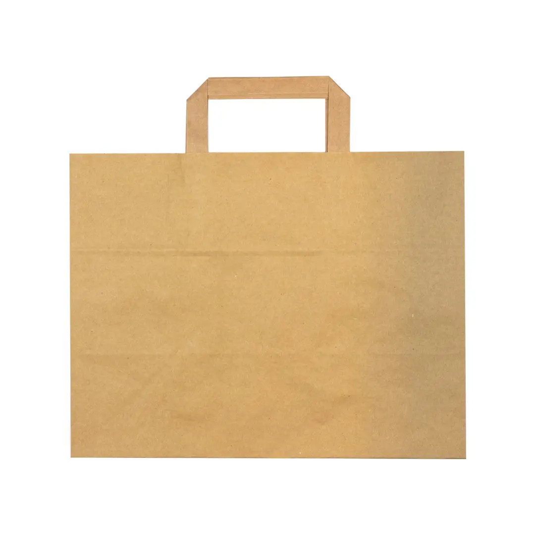 Met deze blokbodemtassen van FSC gecertificeerd papier kunt u uw takeaway duurzaam thuisbezorgen! De blokbodemtassen hebben een natuurlijke uitstraling en bieden een eerlijk alternatief voor plastic tassen. De tassen zijn voorzien van een blokbodem zodat u gemakkelijk gerechten kunt stapelen en twee platte hengels om de tas aan op te tillen. In combinatie met de andere duurzame takeaway producten kunt u uw gerechten duurzaam presenteren en afleveren.