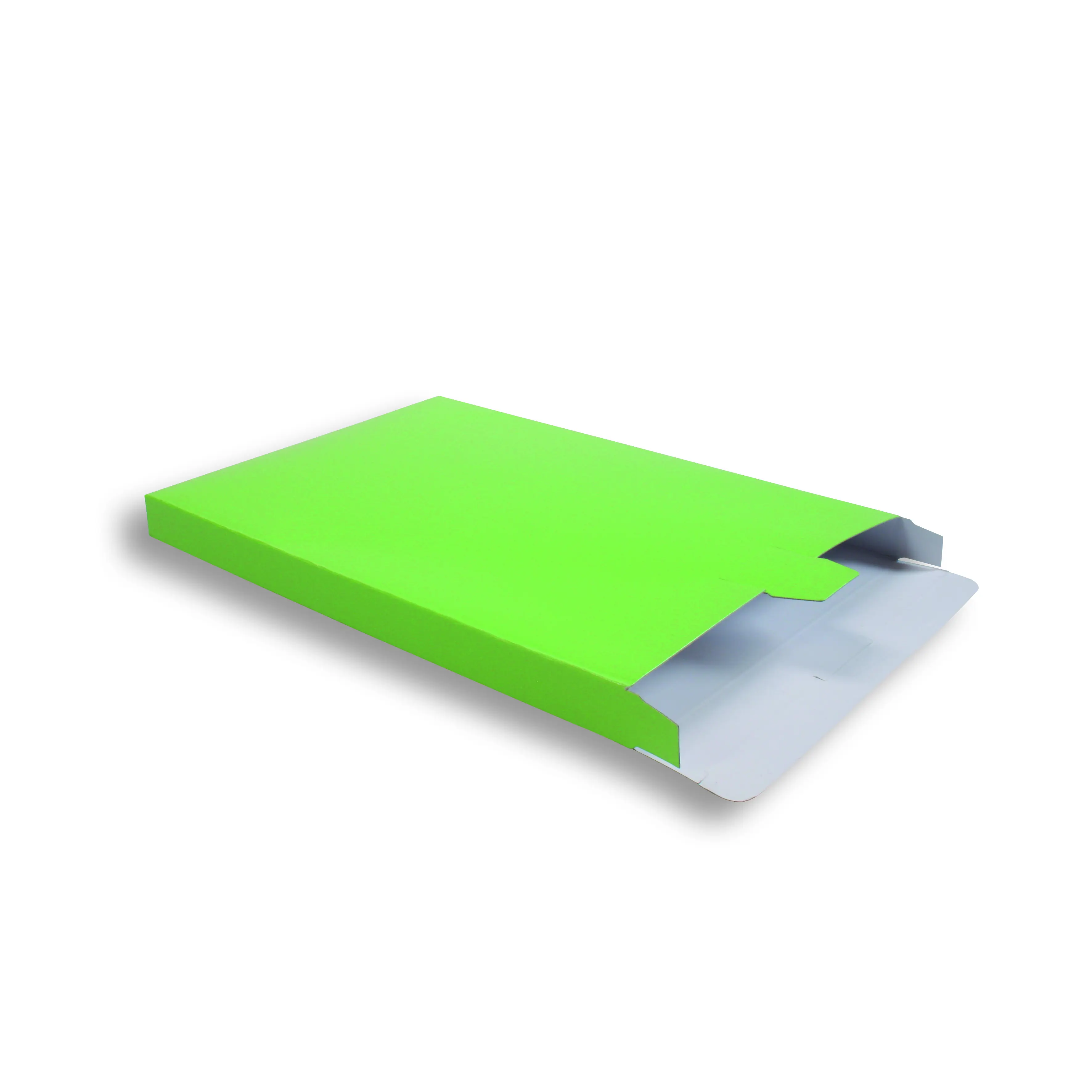 De gekleurde kartonnen verzendverpakkingen zijn ideaal voor het verzenden van bijvoorbeeld boeken. De verpakking valt op tussen de post door de verschillende mooie en frisse kleuren. Met de gekleurde kartonnen verzendverpakking bent u zeker van een veilige en professionele verzending van uw goederen. De opening van de verzendverpakking zit aan de korte zijde en is voorzien van insteekklepjes voorzien van weer haak. Het gewicht van de envelop is circa 125 gram per stuk.