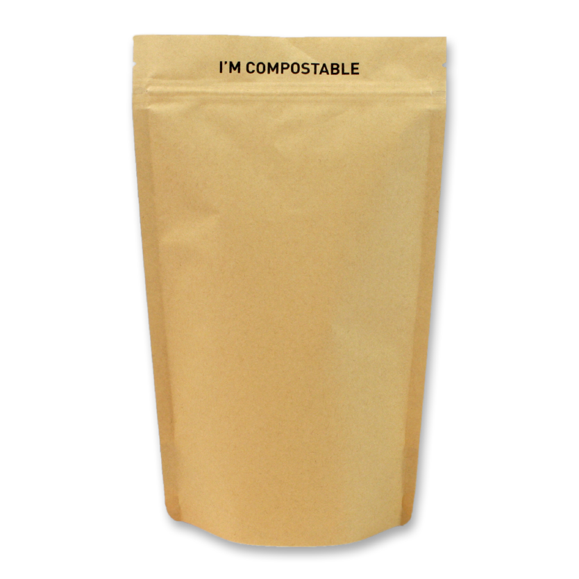 Dit is onze eerste volledig composteerbare stazak die is gemaakt van een combinatie van kraft papier en pla. PLA is een 100% bio based plastic gemaakt uit mais en suikerriet. Deze stazak kan ingezameld worden bij het GFT afval en zal in industriële composteerinstallatie composteren. Ook de lijm en de inkt die gebruikt zijn voor deze verpakking zijn gecertificeerd composteerbaar. De verpakking is hersluitbaar middels een gripsluiting, ook deze gripsluiting is gemaakt uit PLA. Tijdens de productie van PLA zien we een reductie van 60% CO2 uitstoot en een reductie van 50% niet hernieuwbare grondstoffen wanneer we dit vergelijken met de conventionele plastics als bijvoorbeeld PET (NatureWorks LCA,2014). U kunt de stazak na het afvullen ook definitief sluiten door deze aan de bovenzijde te sealen. Dit kunt u bijvoorbeeld doen met onze DaklaSealer. De stazak is geschikt voor het verpakken van food en non food producten. We adviseren om geen vloeistoffen te verpakken in deze verpakking.
