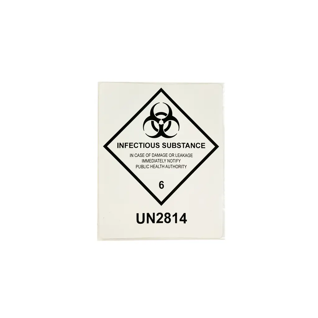 Deze labels / stickers voldoen aan de verpakkingsvoorschriften, zoals deze gelden voor buitenverpakkingen volgens verpakkingsinstructie P(I)620 (infectieuze stoffen UN2814) Tevens zijn er speciale labels voor transport met droogijs.