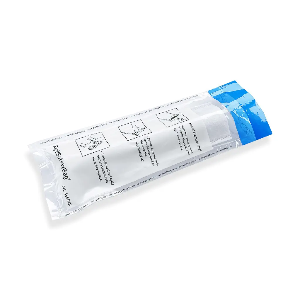 De Rigid Safetybag is een unieke en efficiënte nieuwe oplossing voor het versturen van biologische stoffen. De Rigid Safetybag voldoet aan de eisen van PostNL en is goedgekeurd door het Belgisch Verpakkings Instituut, en voor ADR en IATA. De Rigid Safetybag bestaat uit een vloeistof- en stofdichte zak met daarin een blister voor 1 swab, omgeven door een absorberende pouch. Deze kan de volledige inhoud van een Swab absorberen in geval van een calamiteit. Openen is vereenvoudigd door de EasyOpen inkepingen.