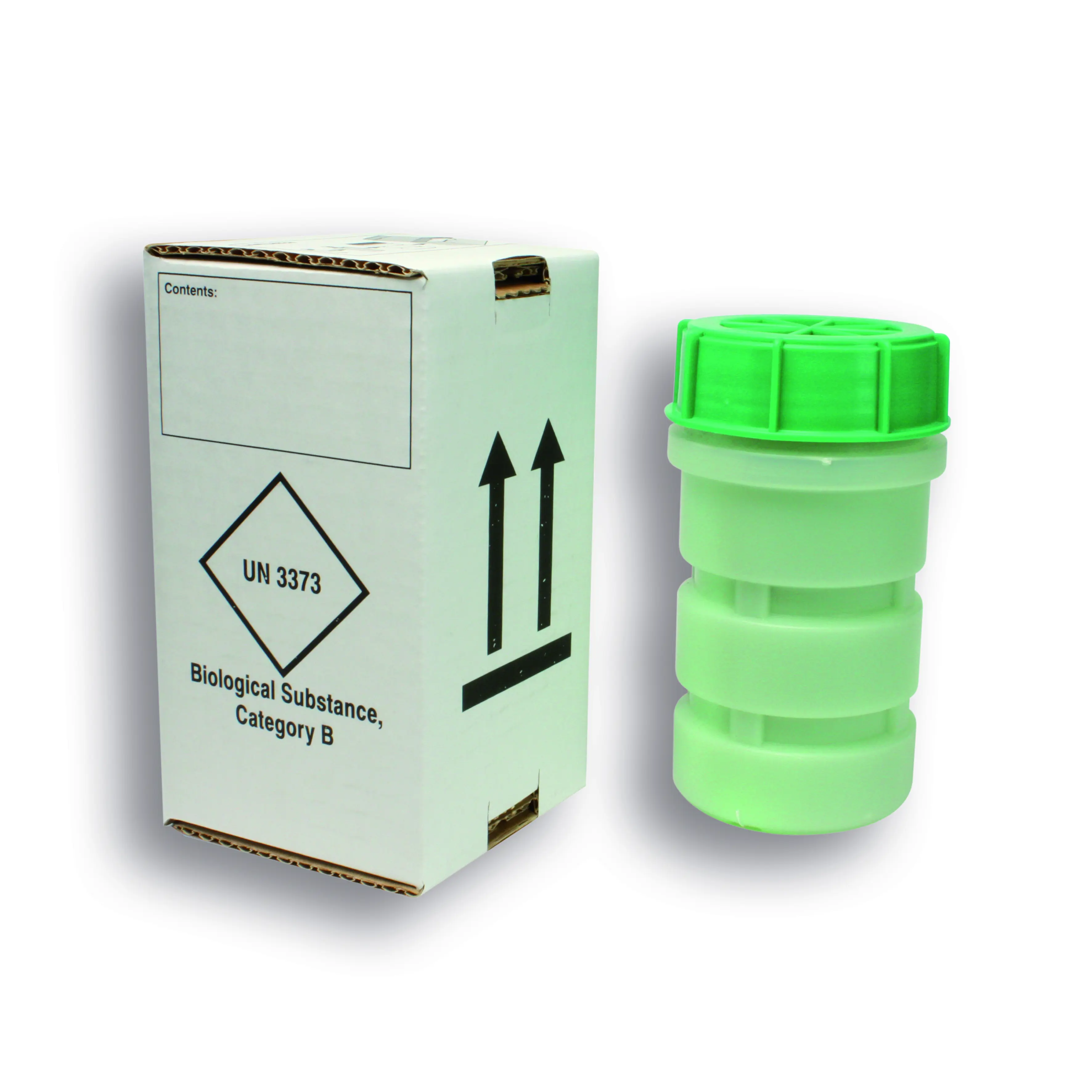520001 (groene DG container 500ml) 520002 - 1 paar (schokabsorberende tussenschot) 520003 - 4 stuks (absorberende zak 20ml) 520008 (kartonnen doos) met UN3373 print
