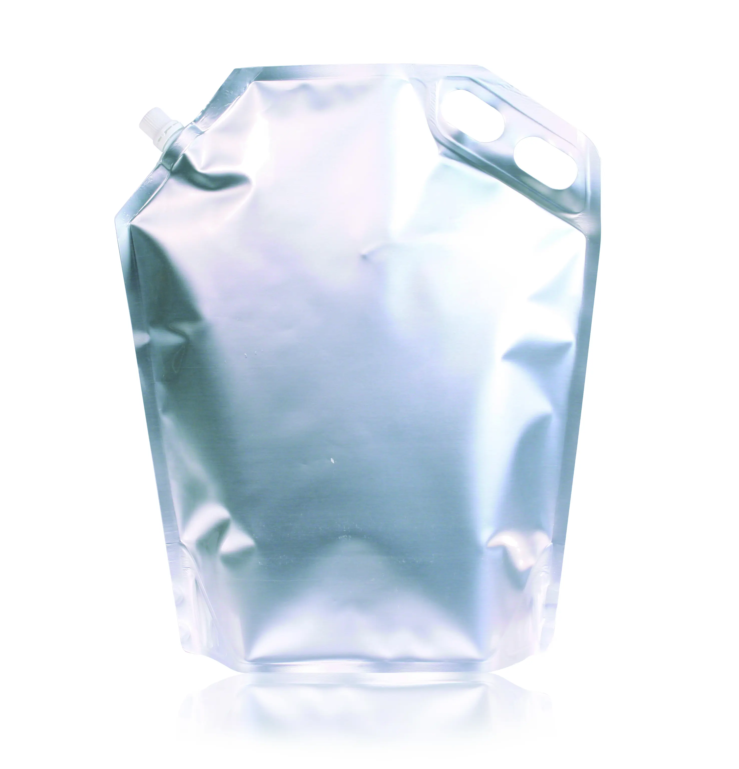 Spoutbags zijn bij uitstek geschikt voor vloeistoffen die aan de verpakking en het gebruik bijzondere eisen stellen. Door de vloeistoffen in een Spoutbag te verpakken, kunt u zeer veel ruimte besparen. Spoutbags zijn vervaardigd uit een laminaat dat bijzonder goede barrière-eigenschappen heeft. Spoutbags zijn standaard verkrijgbaar in aluminium en transparante uitvoeringen. Door de ronde bodem kunnen de verpakkingen makkelijk en stabiel rechtop staan. Te bedrukken in één kleur vanaf 100 stuks. Spoutbags zijn uitermate geschikt voor vloeistoffen zonder koolzuur of andere gassen. Wij kunnen op aanvraag kleine en grote aantallen in eigen huis afvullen. Vraag naar de mogelijkheden door geheel vrijblijvend een offerte op te vragen.